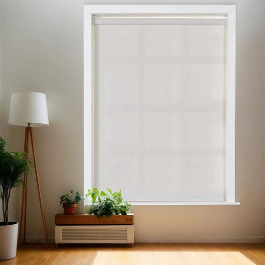 A115 5% Openness Hemp Texture Cordless Spring-loaded Solar Shades with Valance