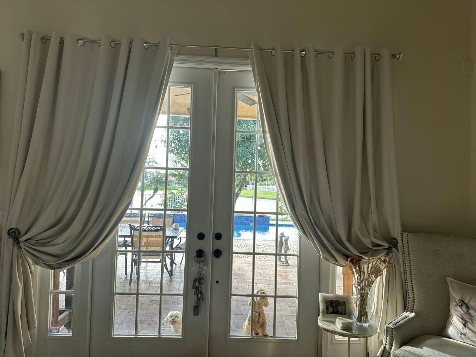 Al hacer esto, cuando las cortinas estén abiertas, no bloquearán tanto el vidrio y permitirán que entre más luz y hacer que la ventana parezca más grande.