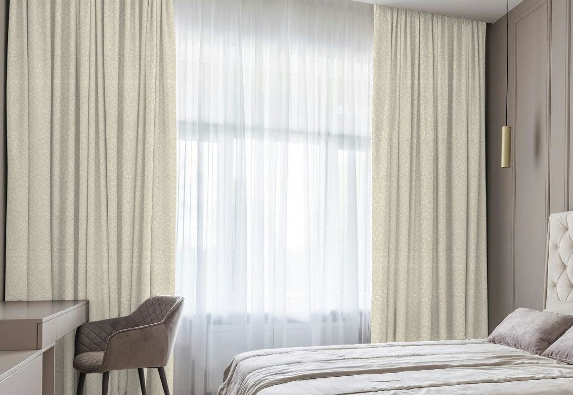 El volumen en las cortinas se refiere a la cantidad de tela utilizada en relación con el ancho de la ventana o la barra de la cortina. Por ejemplo, una cortina con el doble de volumen utiliza el doble de ancho de tela que el ancho de la ventana. Esto le da a la cortina un aspecto más fruncido y lujoso. Para más información sobre el volumen, visite nuestra GUÍA DE VOLUMEN .