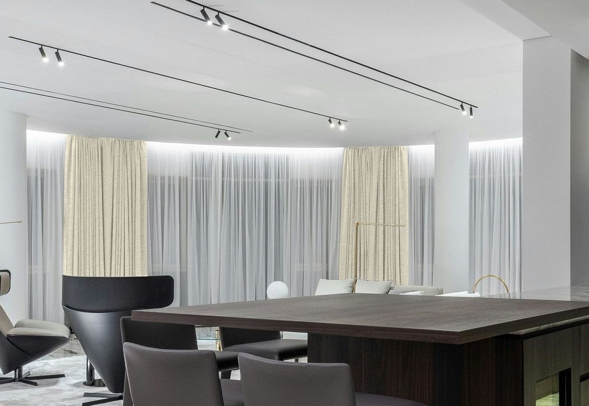 La opción de bucle de cable continuo es una opción preferida para cortinas anchas o pesadas, ya que proporciona una apertura sin esfuerzo y al mismo tiempo garantiza una apariencia ordenada al eliminar los cables colgantes.