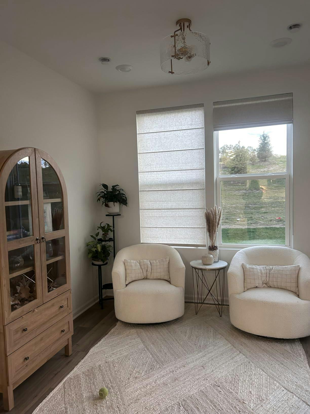 Bring timeless elegance to your windows with Linen Roman Shades, crafted from a premium blend of 10% natural linen and 90% durable polyester. The linen fibers provide a soft, breathable texture, while polyester adds durability, wrinkle resistance, and easy care. Designed in a classic Roman shade style, these window treatments fold neatly to create a clean, tailored appearance. Their light-filtering fabric gently diffuses sunlight while providing privacy, making them ideal for living rooms, bedrooms, or dining areas. A versatile and stylish choice that combines natural charm with practical functionality.