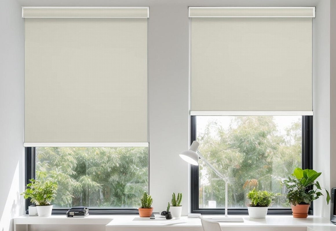 Coated Fine-Texture Blackout Cordless Spring-loaded Solar Shades with Valance deliver ultimate light control and modern minimalism. The finely textured blackout fabric is treated with a special coating for enhanced durability and total sun blockage—perfect for bedrooms, nurseries, and media rooms. Its cordless spring mechanism ensures easy, tangle-free operation, while the integrated valance adds a sleek, clean-lined finish.