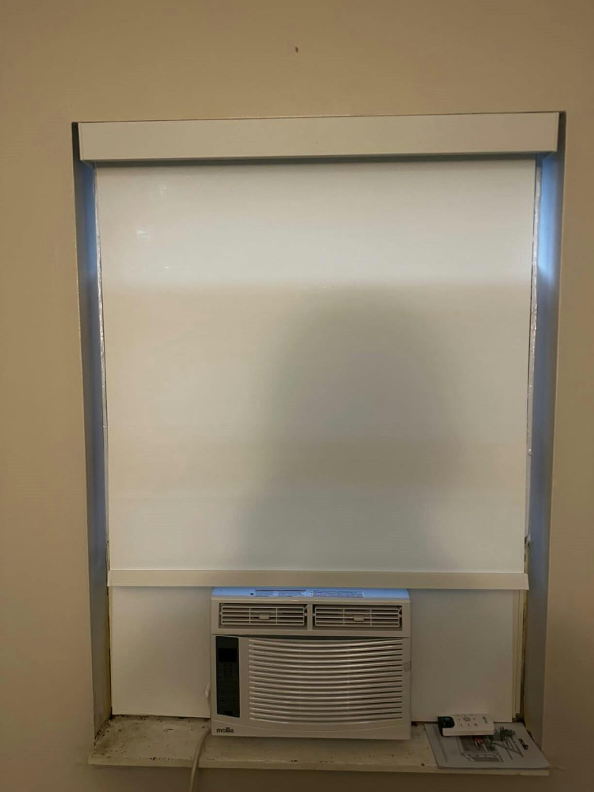 Blackout Fireproof Fiberglass Cordless Spring-loaded Solar Shades with Valance are engineered for superior safety and performance. Crafted from fiberglass with a blackout coating, these shades completely block light while meeting fire-resistant standards—making them ideal for commercial spaces, home offices, or high-safety areas. The cordless spring-loaded mechanism ensures smooth, safe operation, and the integrated valance adds a sleek, finished look.