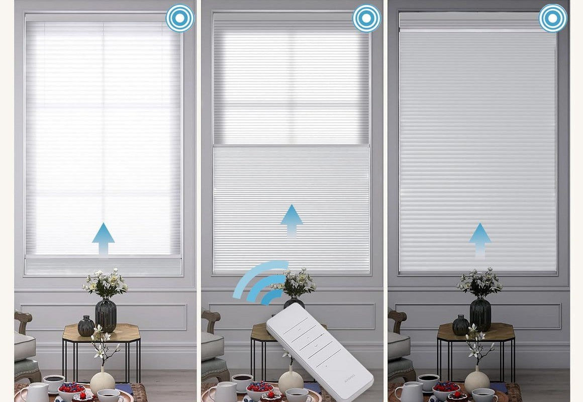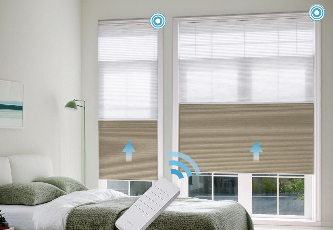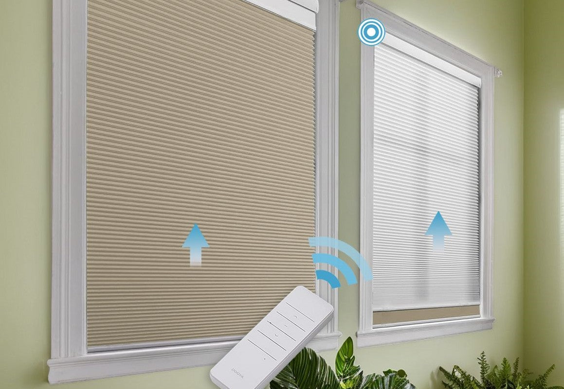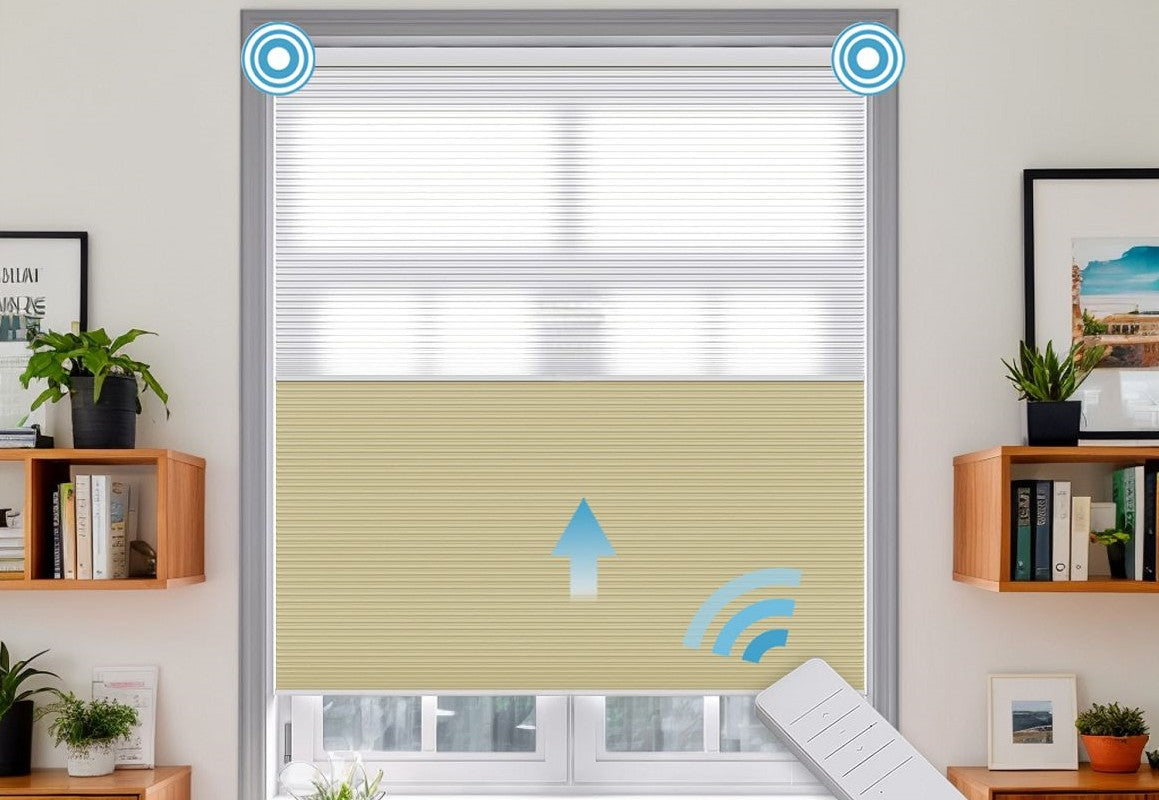 Achieve full light control and privacy with our Motorized Day Night Honeycomb/Cellular Shades. Designed with dual-layer construction—light filtering for daytime ambiance and blackout for nighttime rest—these shades adapt seamlessly to your lifestyle. The honeycomb design enhances insulation, helping to regulate room temperature year-round. Effortlessly switch between modes with remote control.