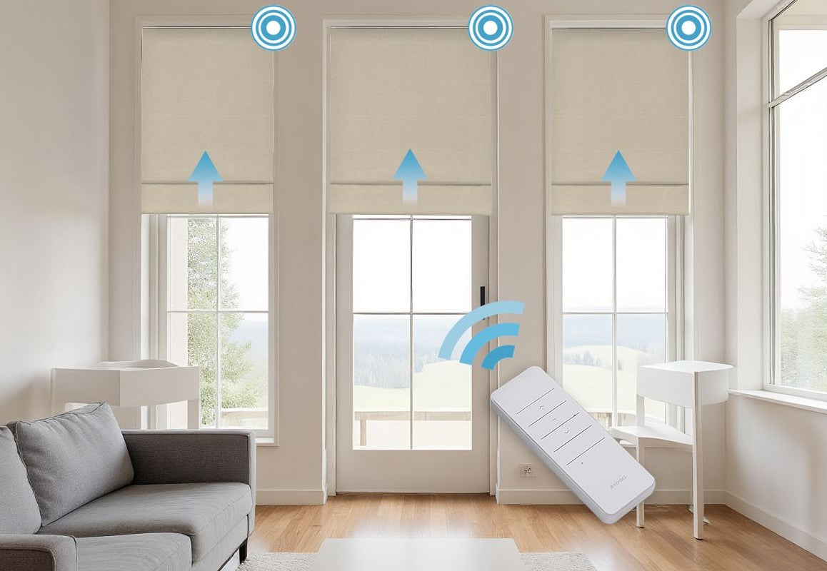 Upgrade your interiors with our Motorized Canvas Textured Blackout Roman Shades, combining a sleek, modern look with effortless functionality. Made from premium canvas-textured fabric, these shades offer a subtle, sophisticated texture that complements any decor. The blackout lining ensures complete light control, privacy, and enhanced energy efficiency, making them ideal for bedrooms, living rooms, or home offices. With motorized operation, you can easily adjust your shades using a remote, adding convenience and contemporary elegance to your home. Perfect for a stylish, comfortable living environment.
