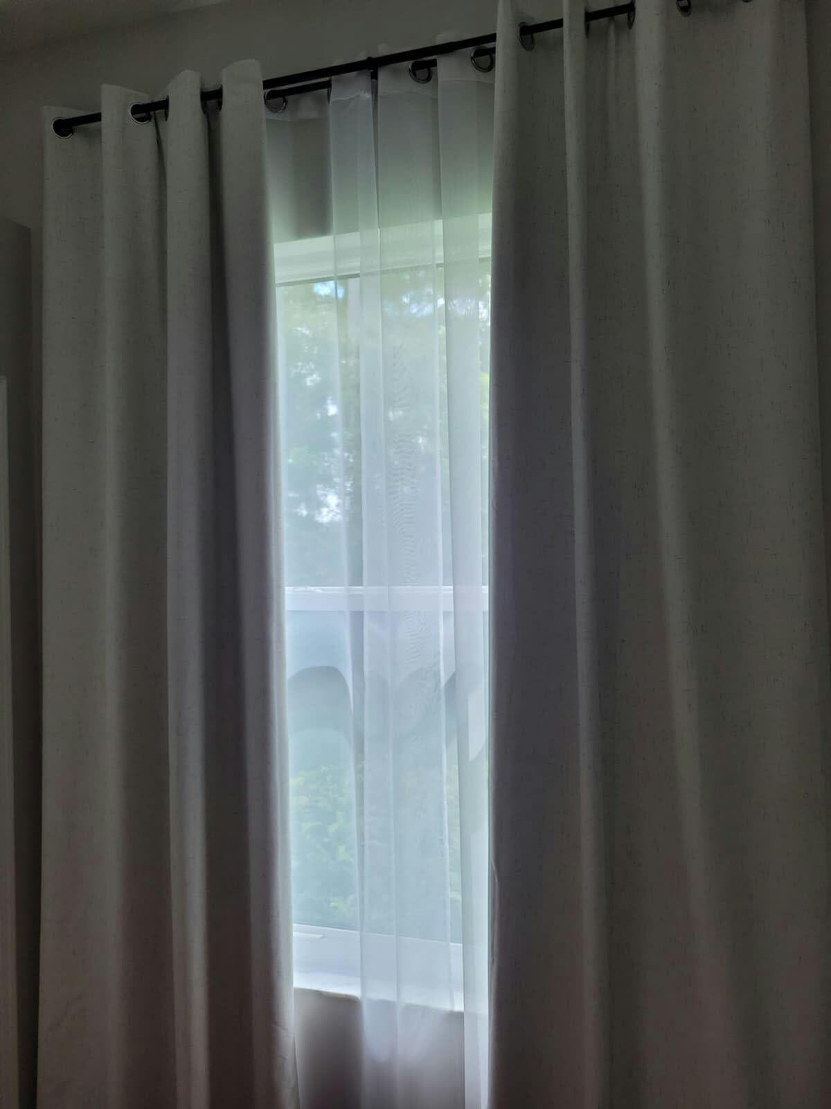 If your drapery rod is not already in place, you will first need to determine the height at which you want to place your drapery rod. Please ensure there is at least 4-6 inches(10-15cm) space above the curtain rod to facilitate proper installation and use of the curtains.