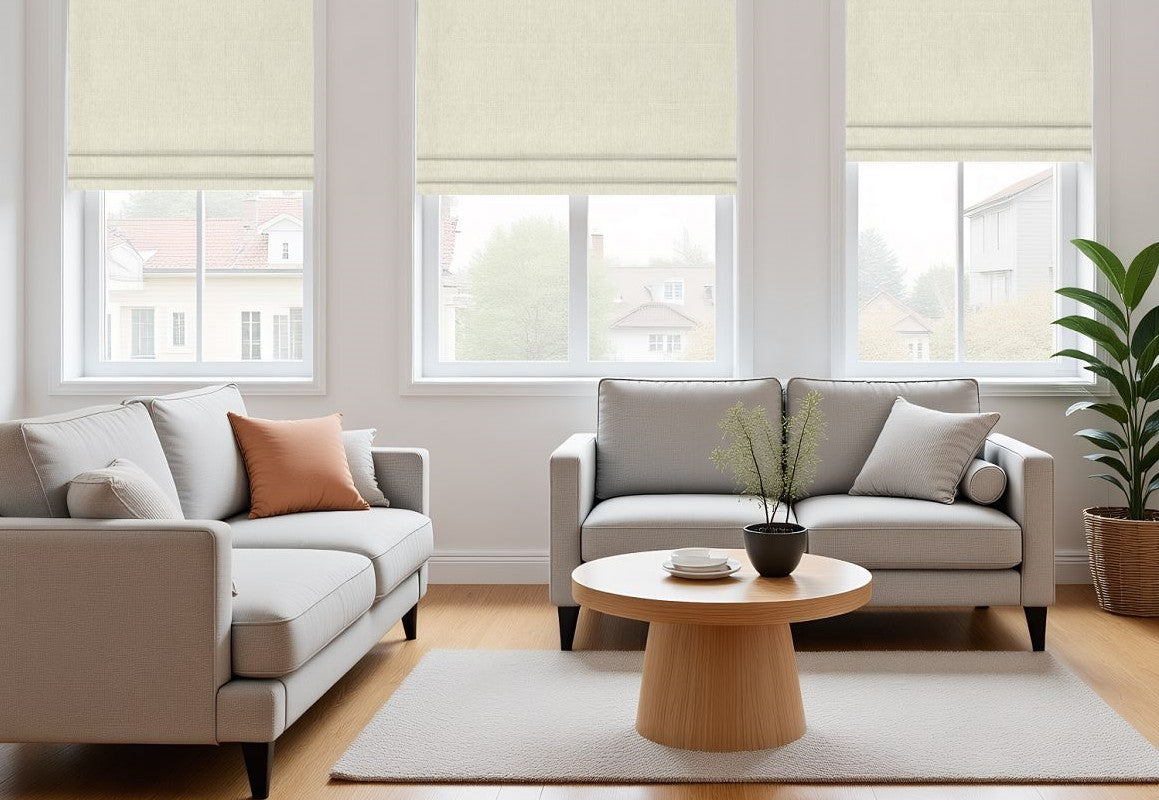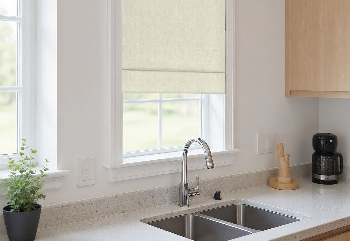 Upgrade your windows with Linen Blackout Roman Shades, crafted from a premium blend of 15% natural linen and 85% durable polyester. The linen fibers provide a soft, textured appearance, while polyester ensures strength, wrinkle resistance, and easy maintenance. Designed in a classic Roman shade style, these window treatments fold neatly to create a clean, tailored look. The blackout fabric effectively blocks sunlight and enhances privacy, making them perfect for bedrooms, media rooms, or any space requiring complete light control. Combining natural elegance with practical functionality, these shades are a stylish and versatile solution for your home.