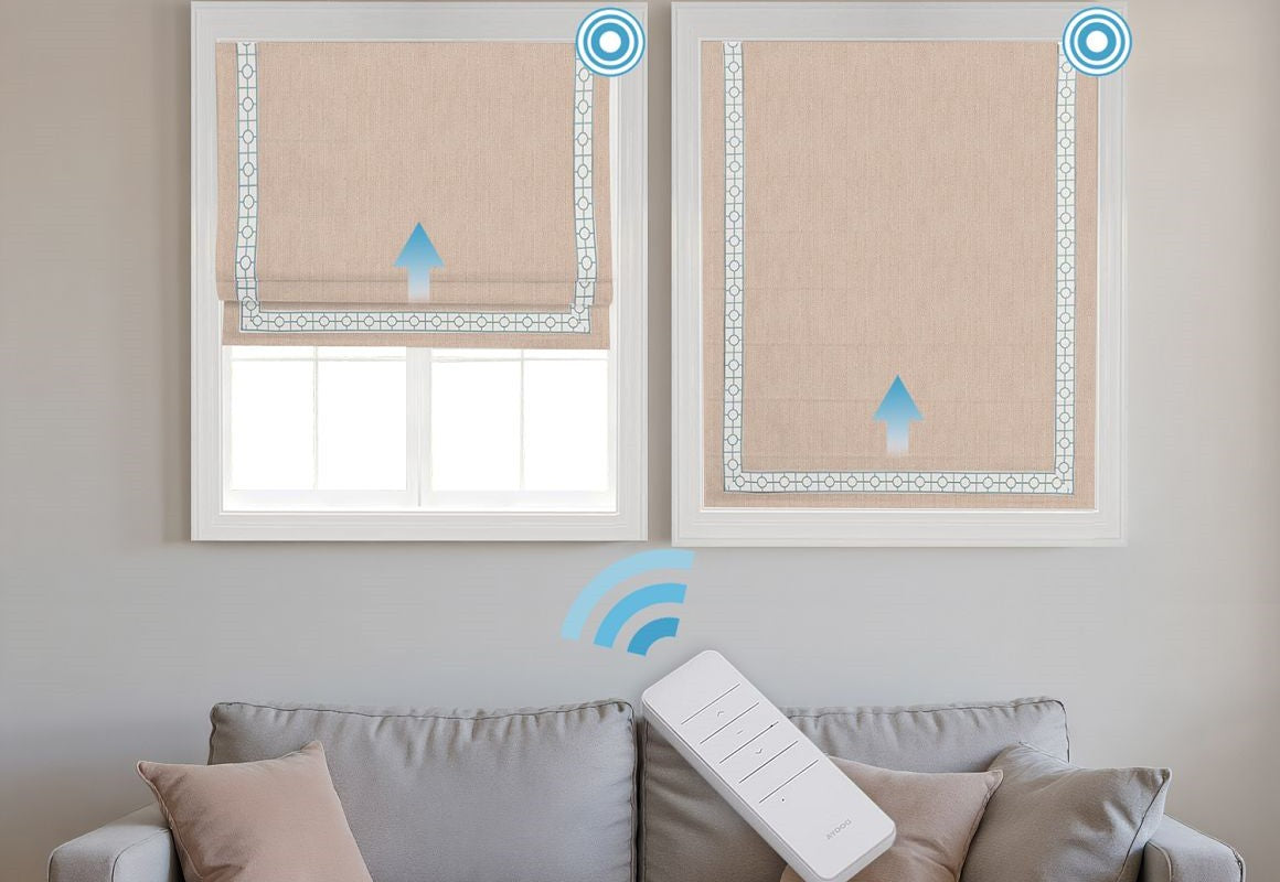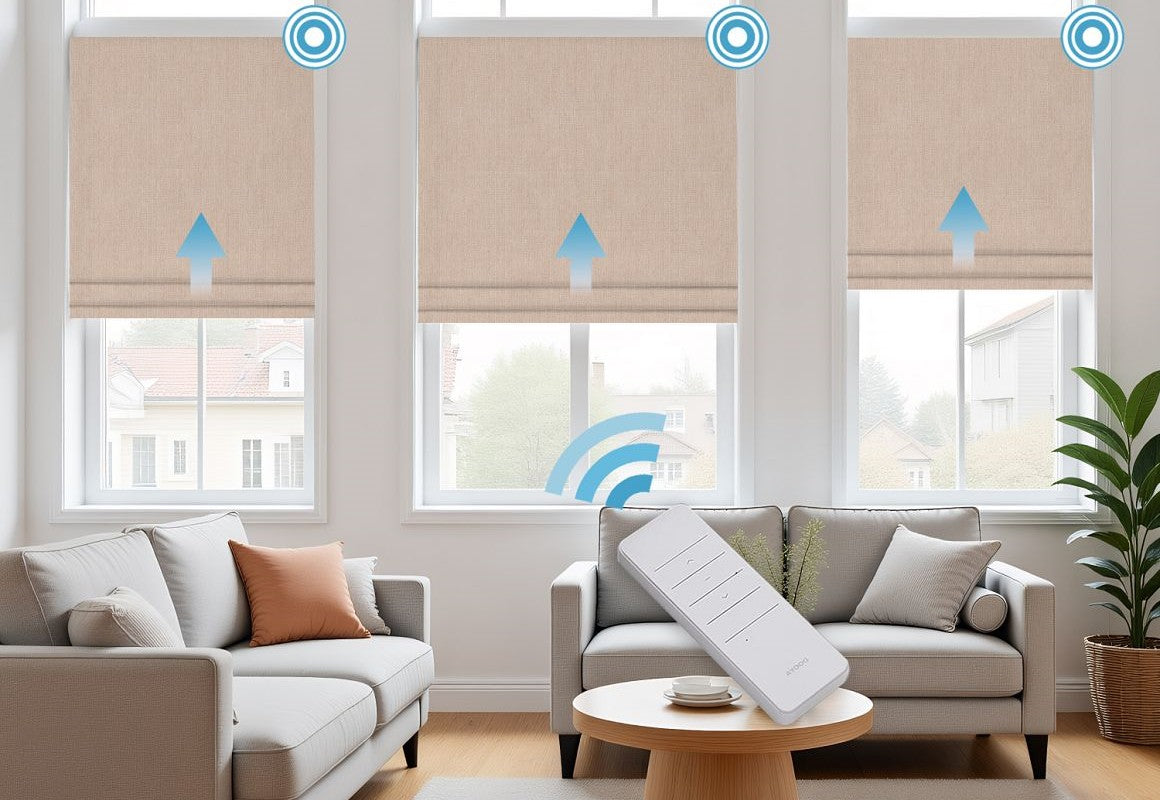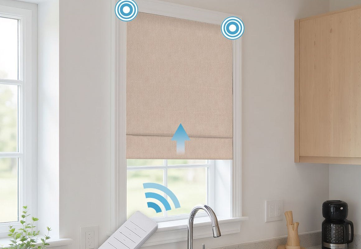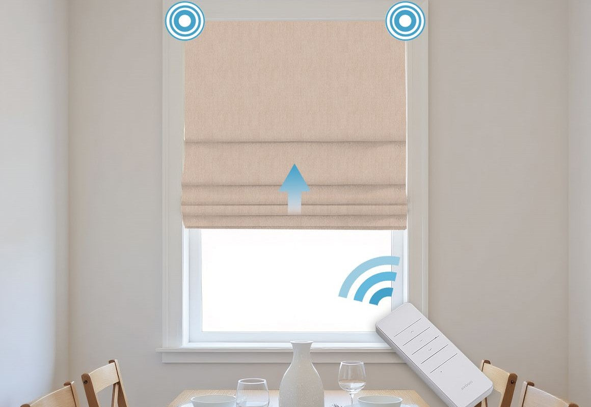 Experience ultimate convenience and style with Motorized Linen Blackout Roman Shades, crafted from a premium blend of 15% natural linen and 85% durable polyester. The linen fibers provide a soft, textured appearance, while polyester ensures durability, wrinkle resistance, and easy maintenance. These motorized Roman shades offer effortless operation via a remote, allowing you to raise or lower the shades smoothly at any time. The blackout fabric effectively blocks sunlight and enhances privacy, making them perfect for bedrooms, media rooms, or any space requiring complete light control. A seamless blend of natural elegance, modern technology, and practical functionality.