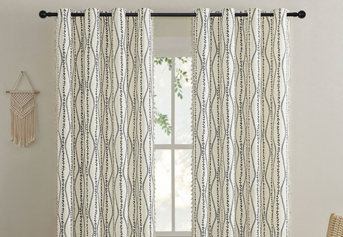 W102 BOHO Willow Branch Pattern Linen Textured Grommet Curtains/Drapes