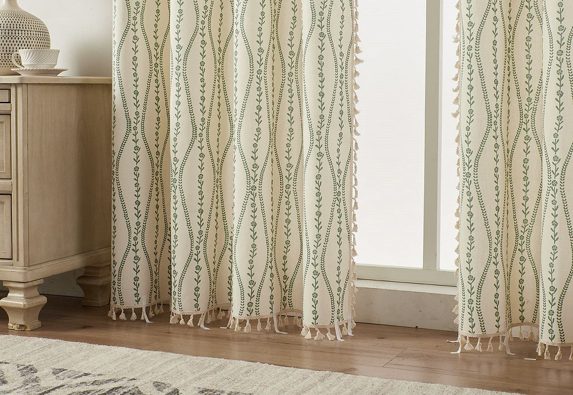 Infuse your space with natural elegance through our BOHO Willow Branch Pattern Linen Grommet Curtains/Drapes. Crafted from a breathable cotton-blend fabric, these curtains feature a graceful willow branch print that brings calm and organic beauty into any room. The soft drape and lightweight texture make them ideal for creating an airy, tranquil atmosphere in living rooms, bedrooms, or studios. Designed with sturdy grommets for easy hanging, they blend functionality with serene bohemian style.