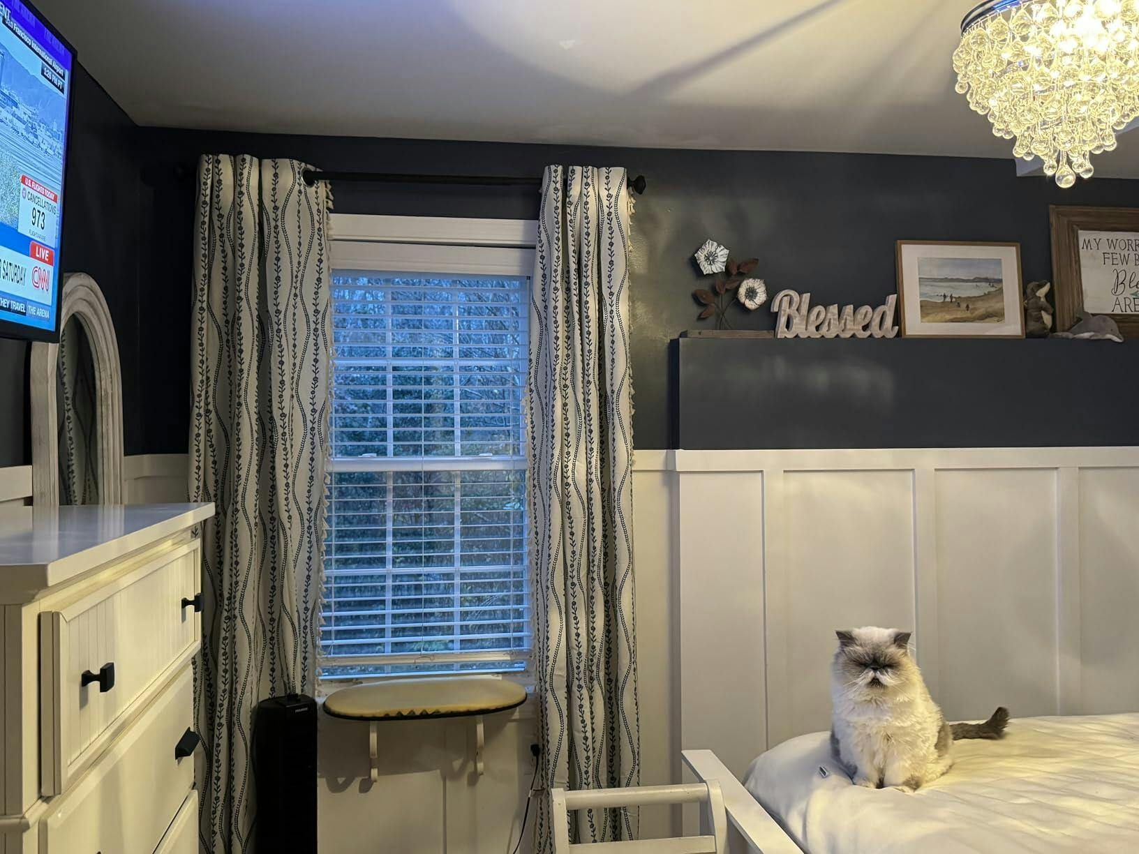 If your drapery rod is not already in place, you will first need to determine the height at which you want to place your drapery rod. Please ensure there is at least 4-6 inches(10-15cm) space above the curtain rod to facilitate proper installation and use of the curtains.