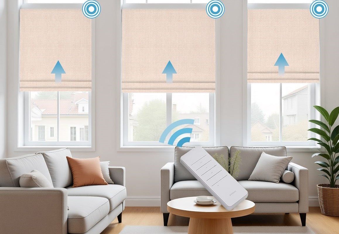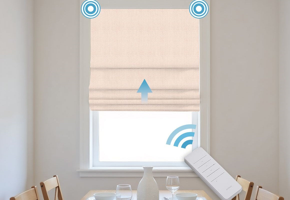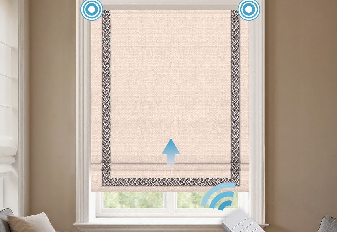 Experience effortless elegance with Motorized Linen Small Check Jacquard Blackout Roman Shades. Crafted from a 15% linen and 85% polyester blend, these shades combine the natural texture of linen with the durability, wrinkle resistance, and easy care of polyester. The subtle small check jacquard pattern adds refined charm, while the blackout lining effectively blocks sunlight, enhances privacy, and improves energy efficiency. With a motorized lift system, you can raise or lower the shades smoothly with a remote, adding convenience and modern luxury to your living space. Perfect for bedrooms, living rooms, or offices, these shades deliver timeless style and smart functionality.