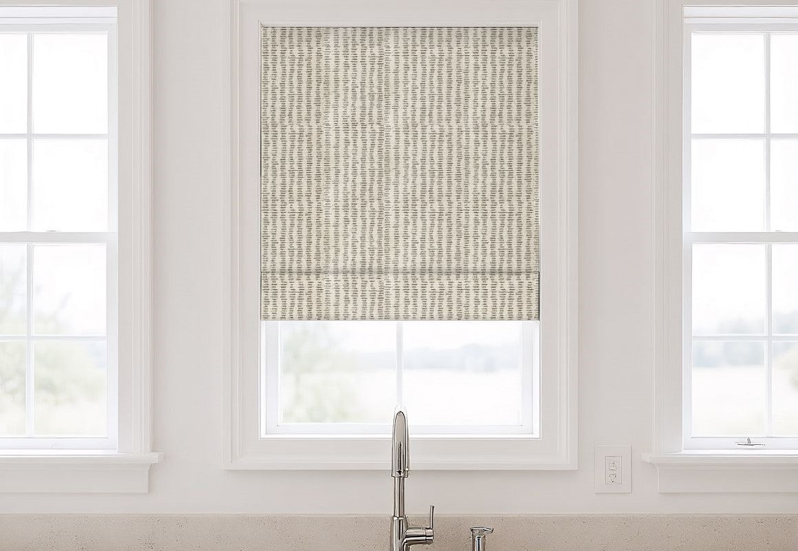 Bring refined sophistication to your interiors with our linen-textured classic moiré jacquard blackout Roman shades. Featuring the distinctive moiré pattern, these shades capture the elegance of rippling water and add a sense of depth and movement to your windows. The natural linen texture softens the design, offering warmth and timeless appeal that complements both contemporary and traditional décor. Crafted with blackout technology, they provide excellent light control, enhanced privacy, and improved insulation to keep your rooms comfortable year-round. The tailored Roman folds highlight the luxurious jacquard weave, making these shades an exquisite choice for living rooms, bedrooms, or home offices.