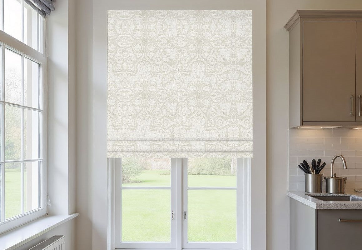 Elevate your interiors with the luxurious charm of our Linen Classic Baroque Jacquard Blackout Roman Shades. Crafted from a premium blend of 15% linen and 85% polyester, these shades feature a finely woven Baroque-inspired jacquard pattern that adds timeless sophistication to any space. The blackout lining provides superior light control, privacy, and energy efficiency for year-round comfort. Designed in a Roman fold style, the shades drape gracefully when lowered and fold neatly when raised, offering a polished and tailored appearance. Perfect for bedrooms, living rooms, or dining areas seeking classic elegance with functional performance.